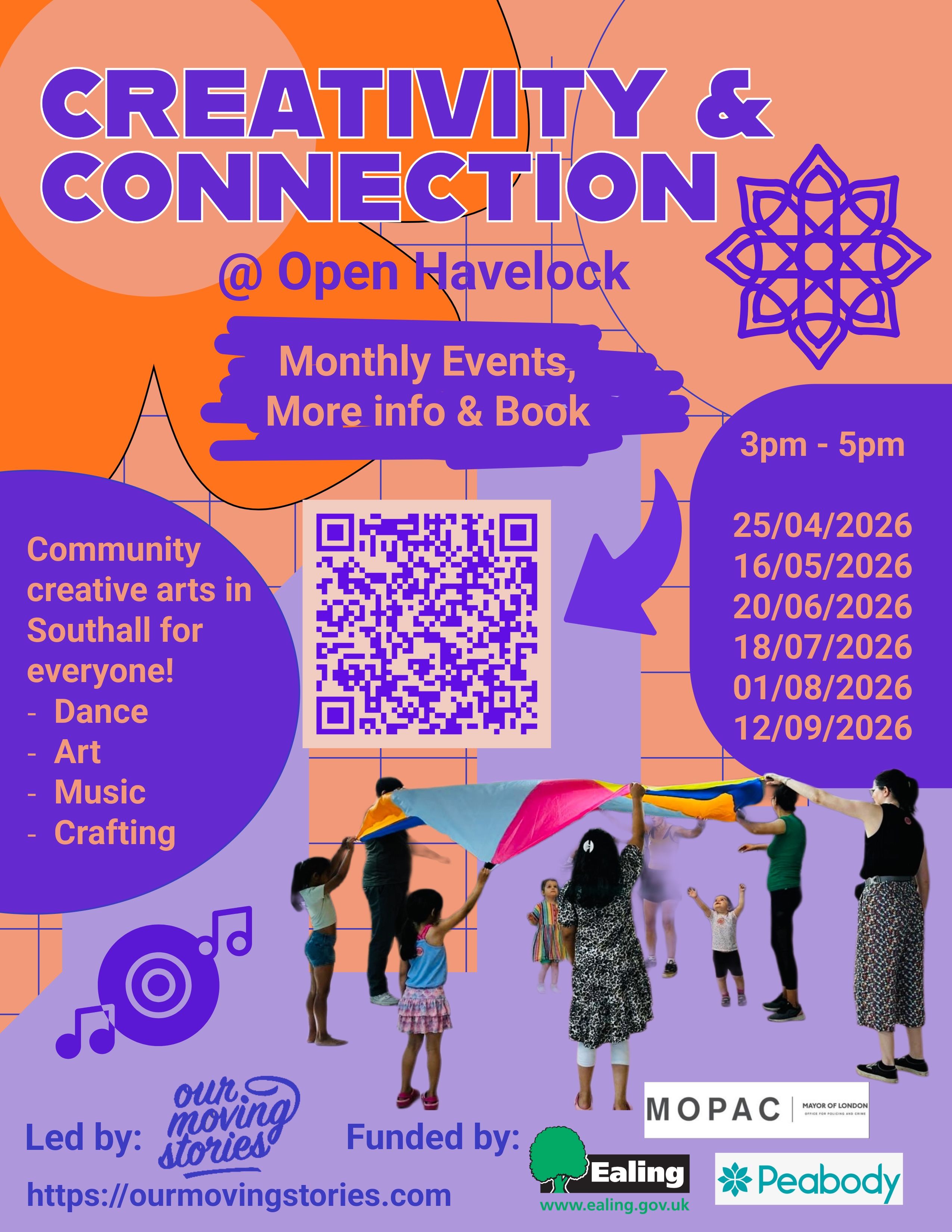 Our Moving Stories is a community focussed company currently based in Southall and the surrounding areas. We are a grassroots organisation made by people for people, exploring the living potential of the moving body and its ability to communicate narrative, make change and bridge across divides. We facilitate and explore movement practice across generations and are inclusive of all abilities, believing that everyone has a story to share through movement.